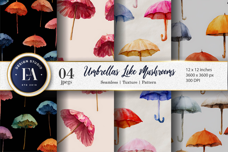 Umbrellas Shaped Like Mushrooms Watercolor Digital Paper