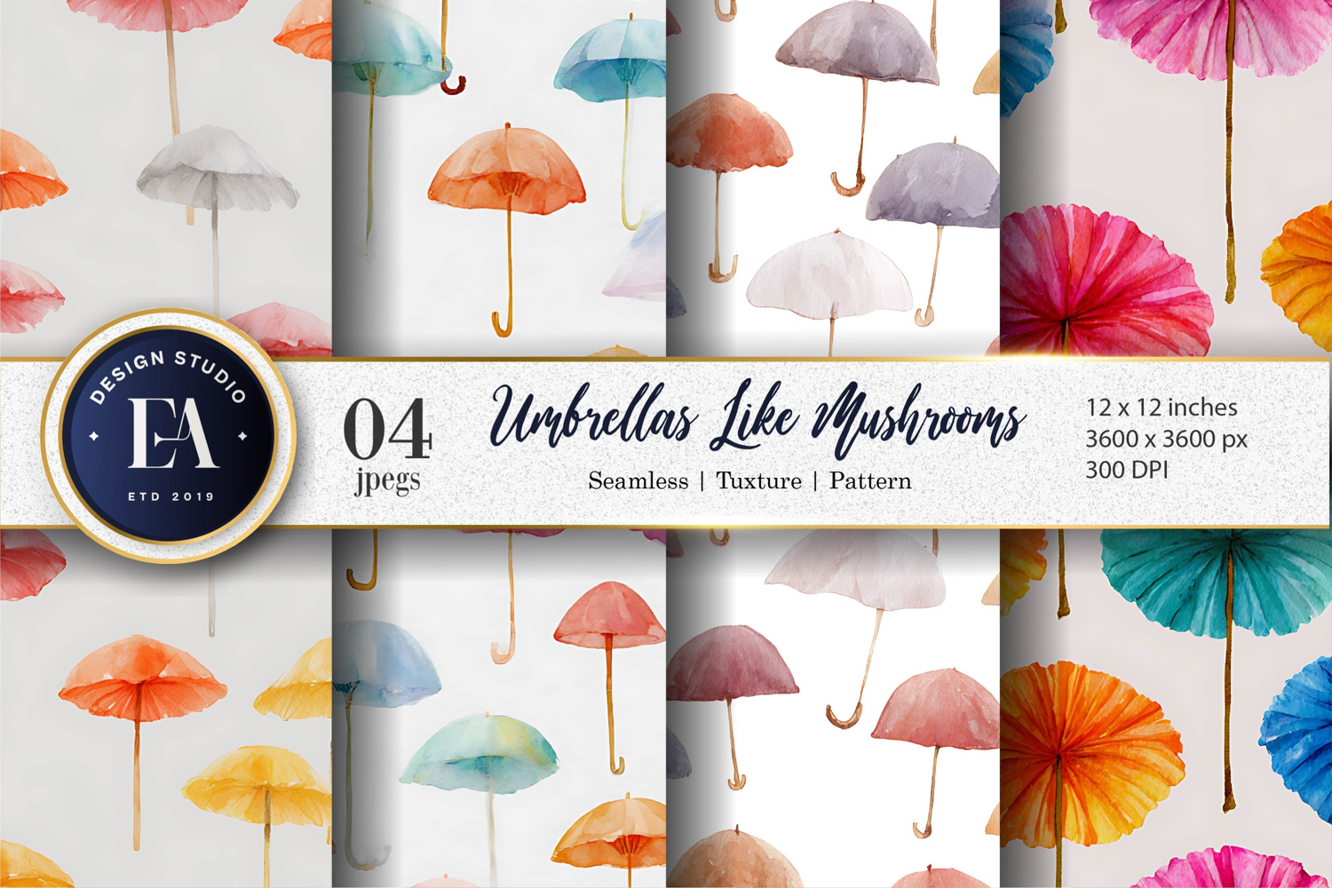 Watercolor Umbrellas Designed Like Mushrooms Digital Paper example image 1