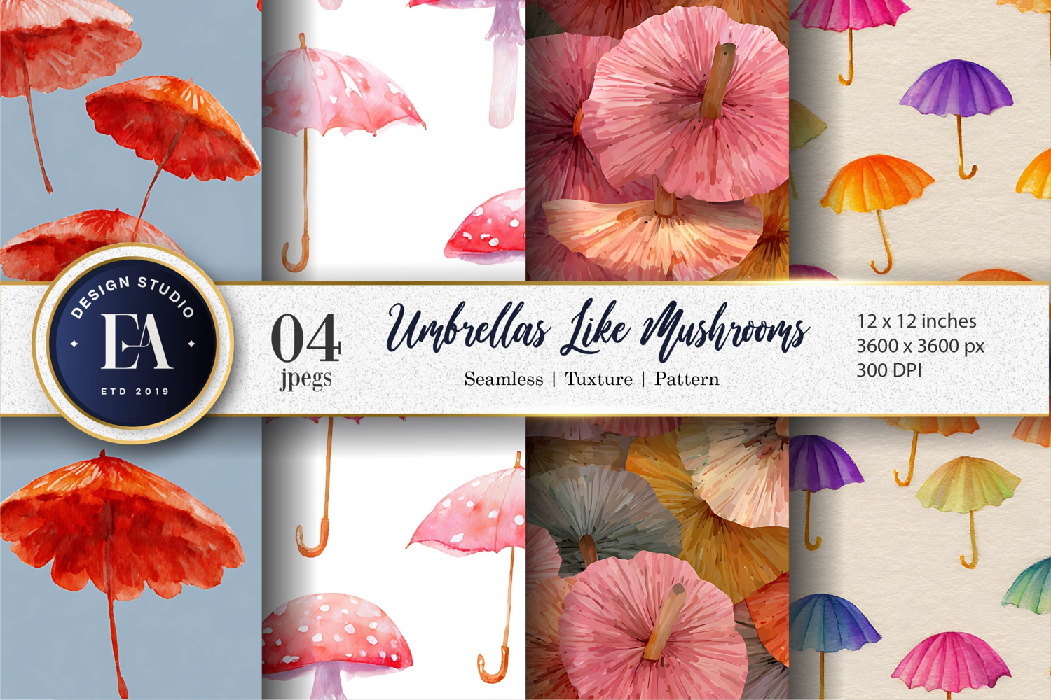 Watercolor Umbrellas Designed Like Mushrooms Digital Paper example image 1