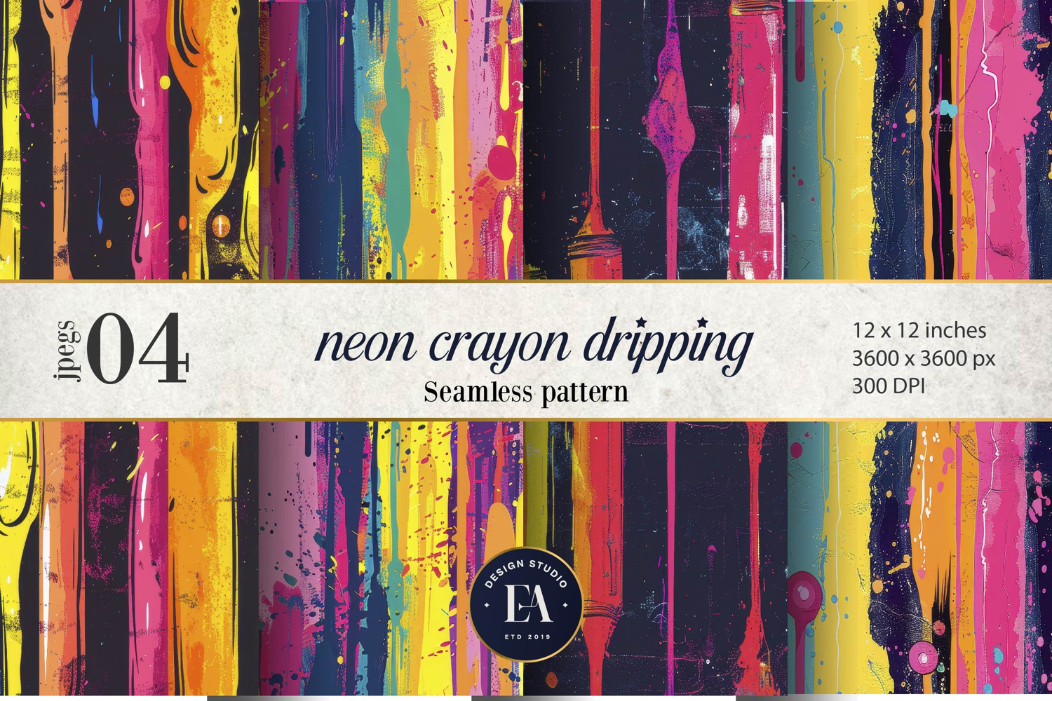 Neon Crayon Drip Texture | Bright Dripping Crayon Pattern. Perfect for crafts, scrapbooks, wall art, invitations, and digital designs. High-resolution and seamless, this unique design adds a whimsical cosmic charm to any project.