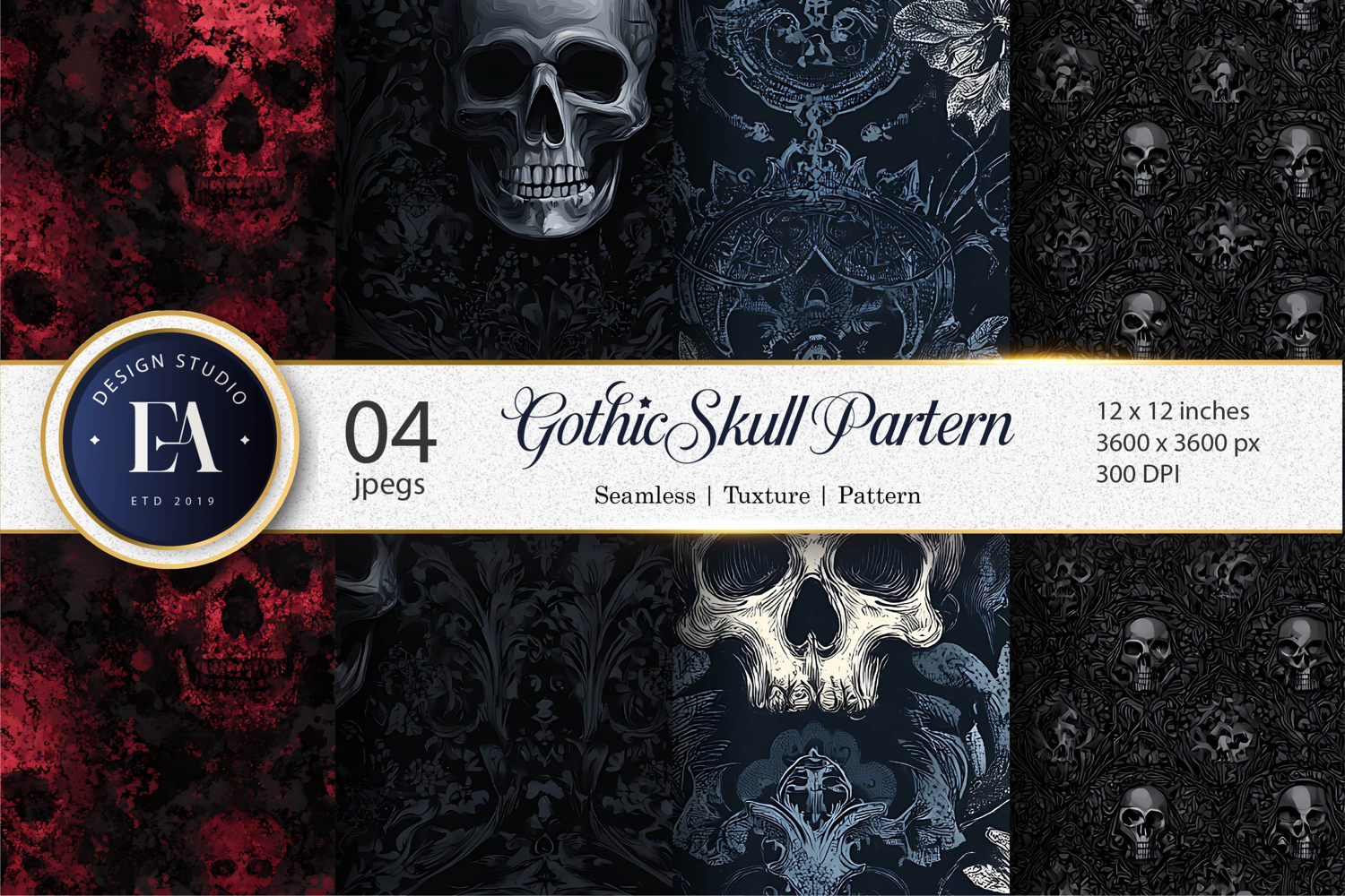 Creepy Skull Pattern Gothic Seamless Tileable Digital Paper. A dark and eerie skull design perfect for gothic, Halloween, and horror-themed projects. Ideal for spooky crafts, invitations, edgy fashion prints, or dramatic digital art backgrounds that need a bold and mysterious touch.