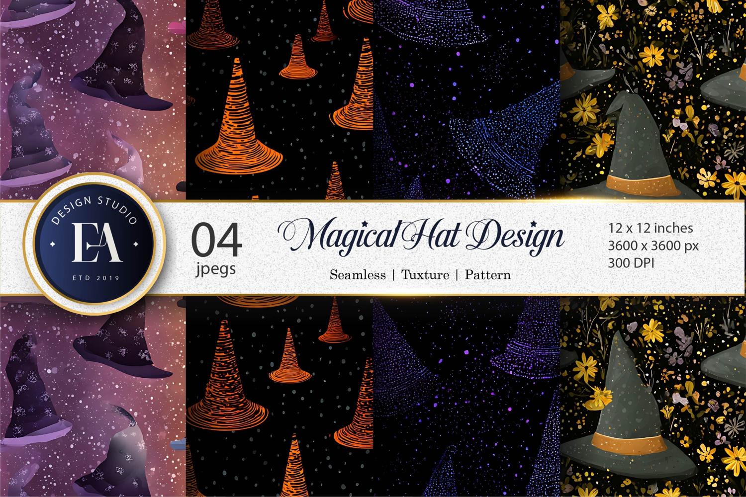 Spooky Magical Witch Hats Pattern Seamless Digital Paper example image 1