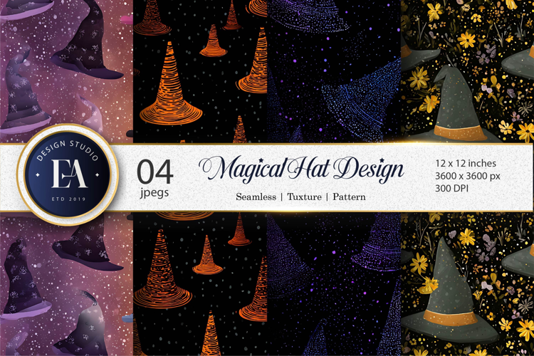 Spooky Magical Witch Hats Pattern Seamless Digital Paper