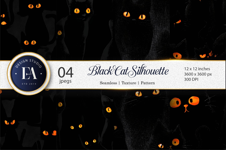 Spooky Black Cat Silhouettes Seamless Tileable Digital Paper. A hauntingly stylish design featuring sleek black cat shapes on subtle backgrounds — perfect for Halloween crafts, gothic themes, party invitations, spooky décor, and digital projects.