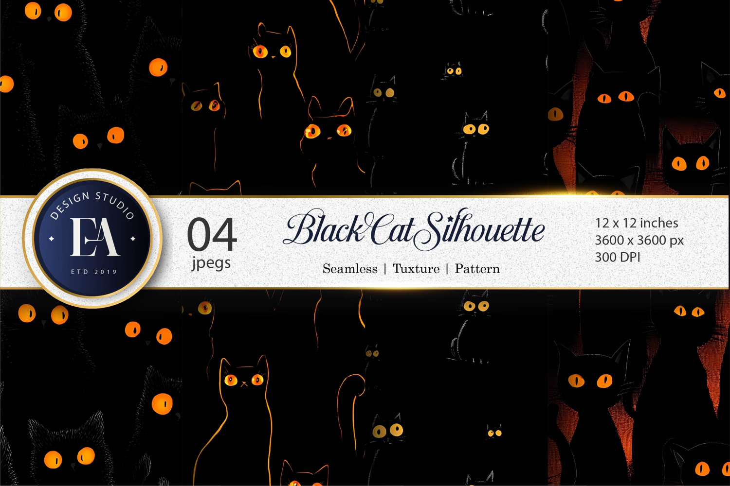 Spooky Black Cat Silhouettes Seamless Tileable Digital Paper. A hauntingly stylish design featuring sleek black cat shapes on subtle backgrounds — perfect for Halloween crafts, gothic themes, party invitations, spooky décor, and digital projects.