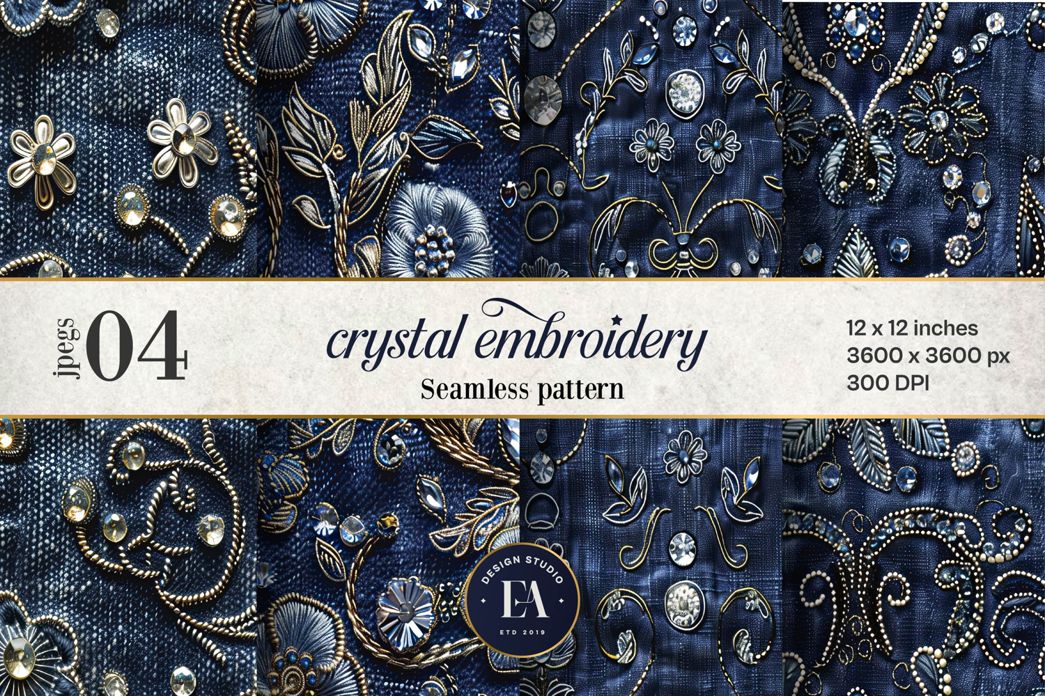 Navy Crystal Embroidery | Luxury Denim Fabric Texture is perfect for creative and crafty projects. It can be used in Gift Wrapping, Promotional Items, Invitations, Wallpaper, Greeting Cards, Planners, Journals, Scrapbook, Notebook Covers, T-Shirts, Mugs, Tumblers, Puzzles, Crafting, and much more,