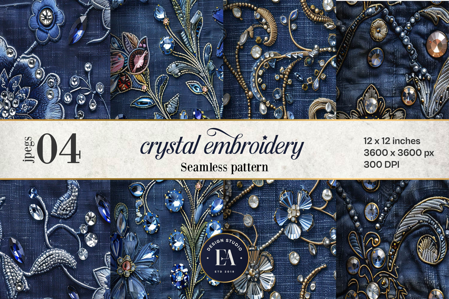 Navy Crystal Embroidery | Luxury Denim Fabric Texture is perfect for creative and crafty projects. It can be used in Gift Wrapping, Promotional Items, Invitations, Wallpaper, Greeting Cards, Planners, Journals, Scrapbook, Notebook Covers, T-Shirts, Mugs, Tumblers, Puzzles, Crafting, and much more,