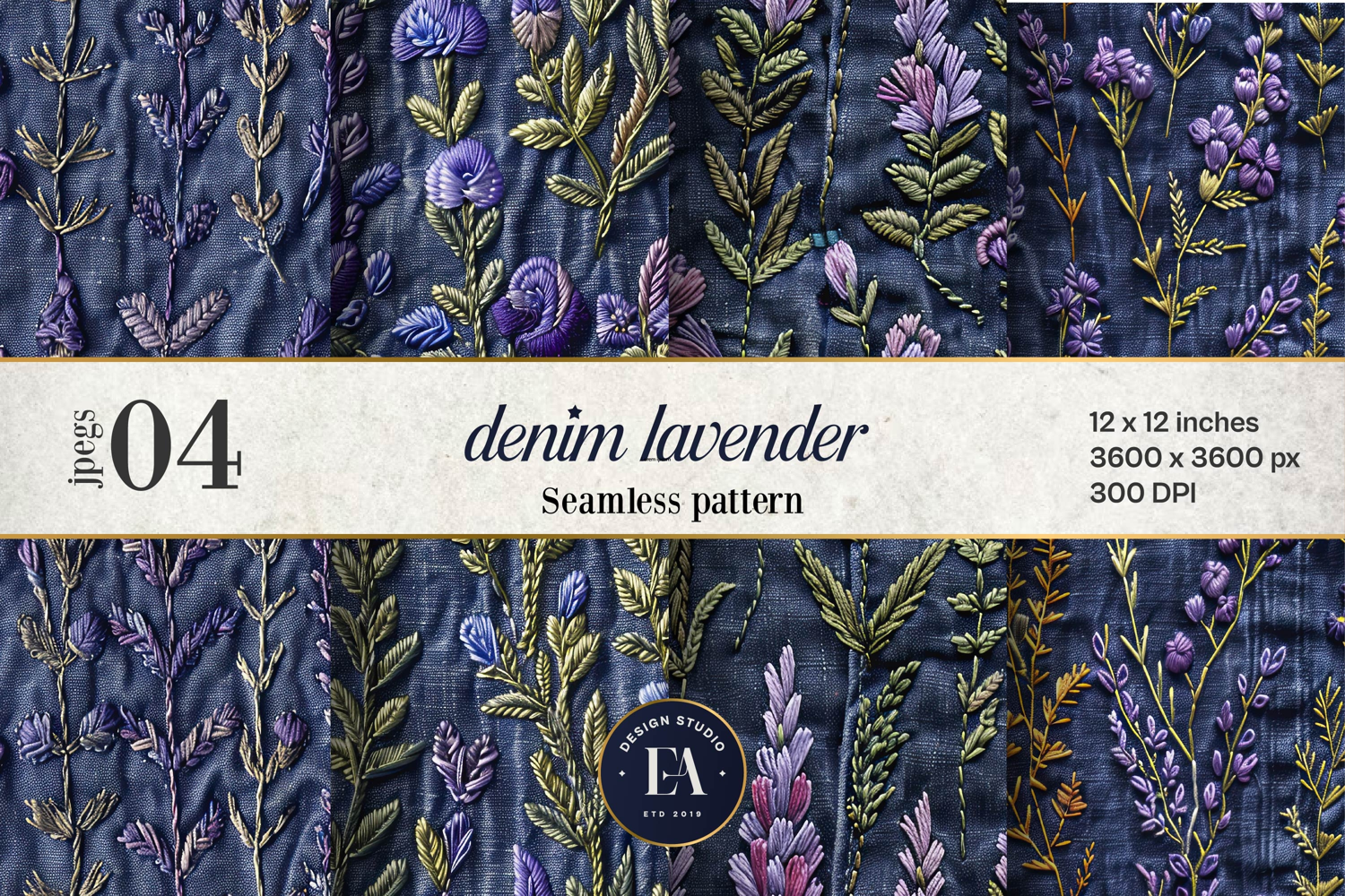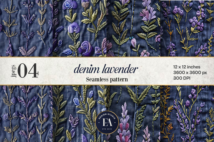 Scrapbook Paper Floral Seamless Pattern Fabric Texture Vintage Embroidery Denim Digital Paper Junk Journal Kit Lavender Embroidery Rustic Digital Background Embroidered Denim Jeans Fabric Print