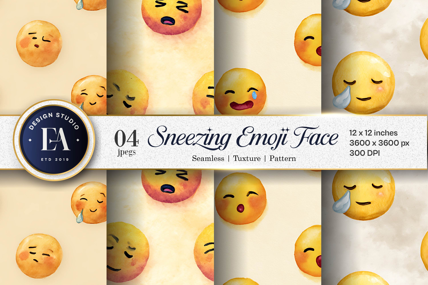 Similar Design Products to Sneezing Emoji Face Watercolor Seamless Digital Paper