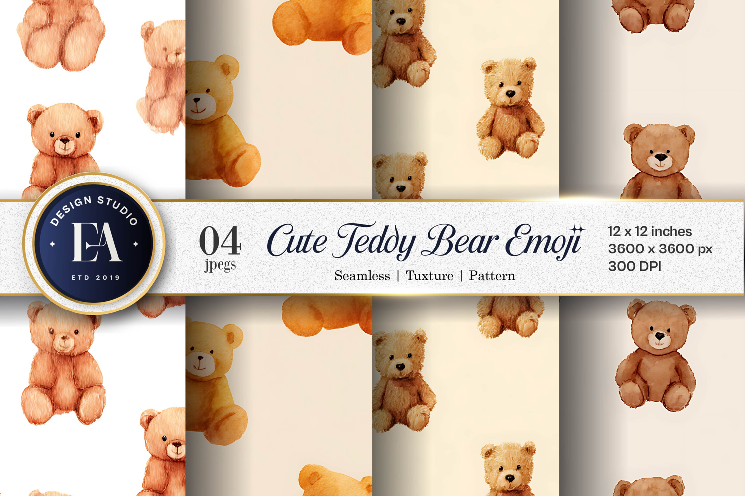 Similar Design Products to Watercolor Cute Teddy Bear Emoji Pattern Digital Paper