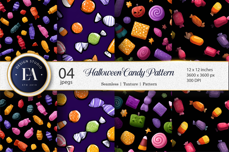 Candy Treats Pattern Seamless Tileable Digital Paper. A fun and festive design filled with colorful candies, lollipops, and Halloween sweets. Perfect for party décor, scrapbooking, digital crafts, invitations, and treat bag designs.