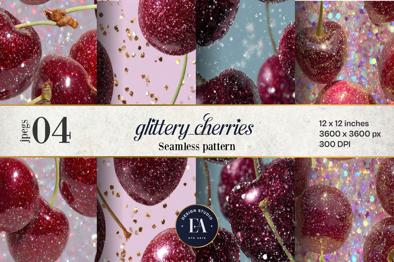 Glitter Coquette Cherry Pattern, Sparkly Glam Texture Paper used for décor, invitations, crafts, scrapbooks, and digital projects. Add a touch of eerie charm to your designs!