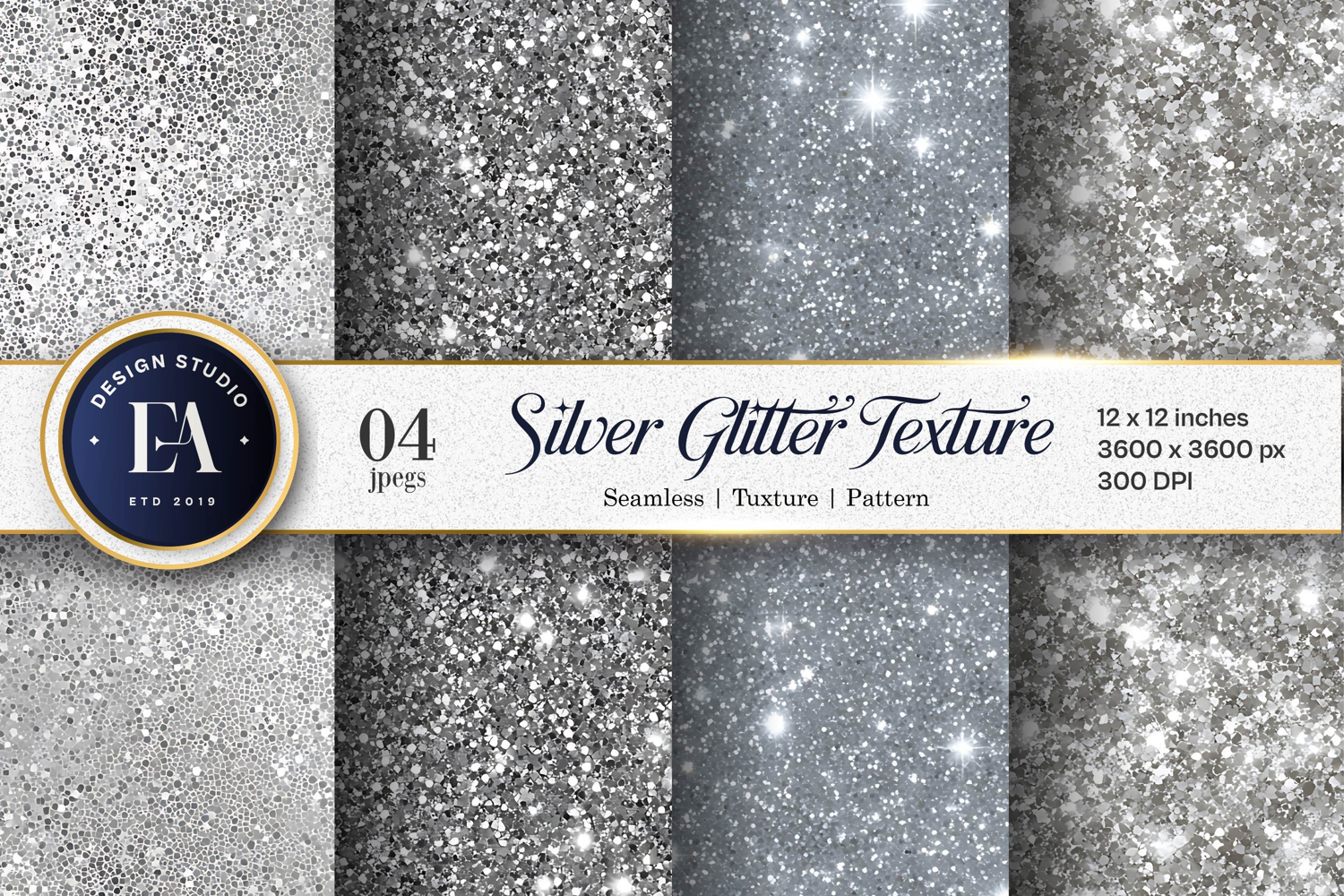Silver Glitter Texture Sparkling Festive Foil Digital Paper. A shimmering and elegant glitter texture design that adds luxury, sparkle, and shine to your creative projects. Perfect for holiday crafts, party stationery, and elegant print designs.