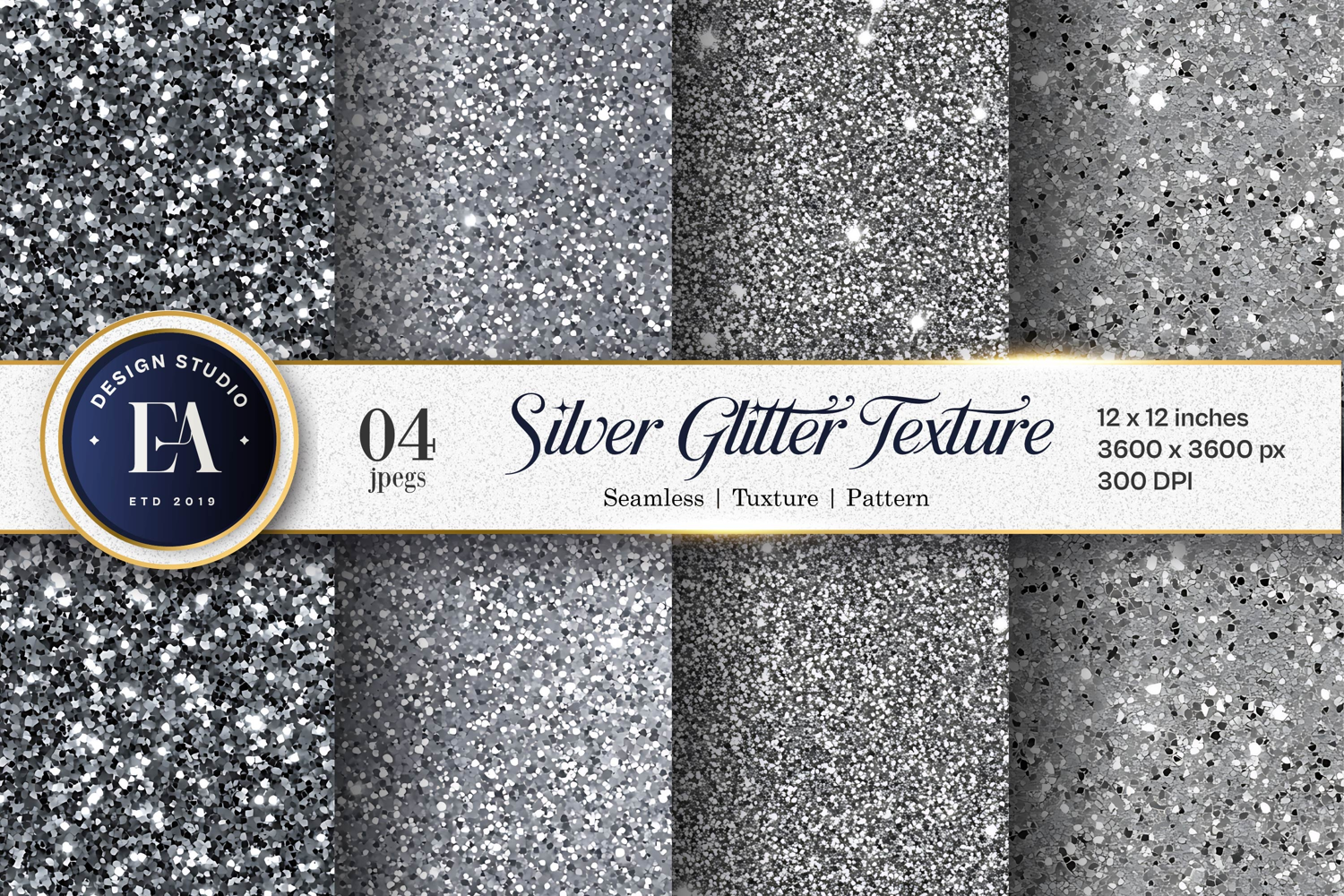Silver Glitter Texture Sparkling Festive Foil Digital Paper. A shimmering and elegant glitter texture design that adds luxury, sparkle, and shine to your creative projects. Perfect for holiday crafts, party stationery, and elegant print designs.