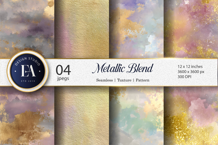 Similar Design Products to Metallic Gold Blue Watercolor Blend Seamless Digital Paper