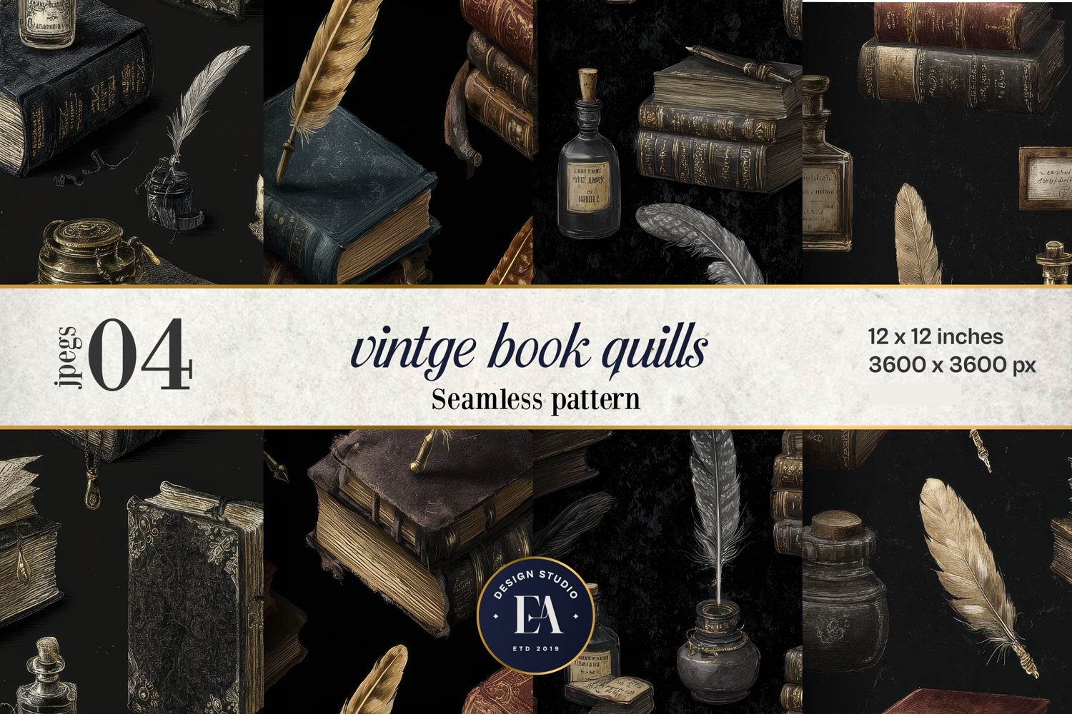 Vintage Book Quills Pattern | Dark Academia Gothic Paper is perfect for your creative and crafty projects. It can be used in Gift Wrapping, Promotional Items, Invitations, Wallpaper, Greeting Cards, Planners, Journals, Scrapbook, Notebook Covers, T-Shirts, Mugs, Tumbler, Puzzles, Crafting and much more,