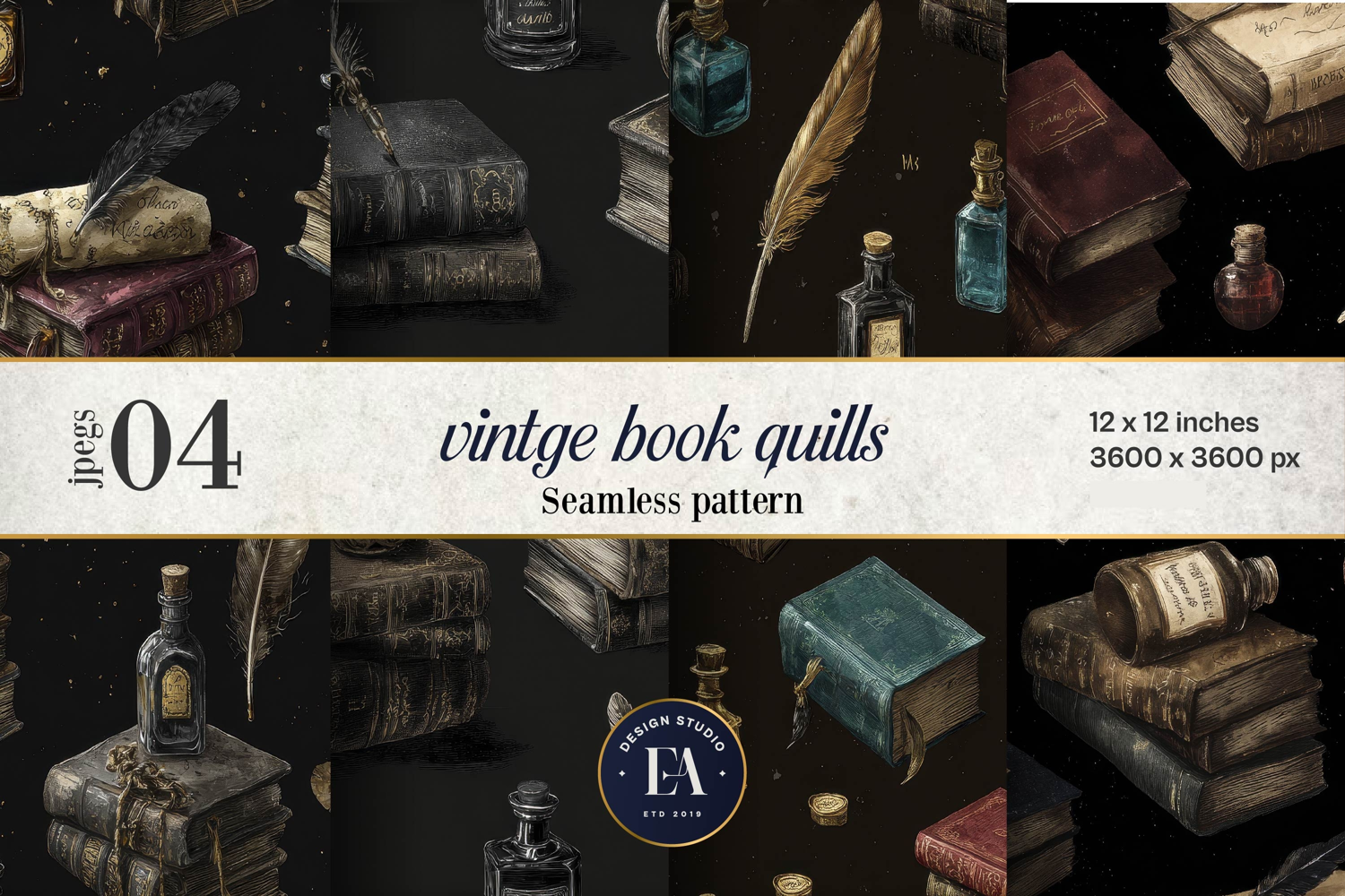 Vintage Book Quills Pattern | Dark Academia Gothic Paper is perfect for your creative and crafty projects. It can be used in Gift Wrapping, Promotional Items, Invitations, Wallpaper, Greeting Cards, Planners, Journals, Scrapbook, Notebook Covers, T-Shirts, Mugs, Tumbler, Puzzles, Crafting and much more,