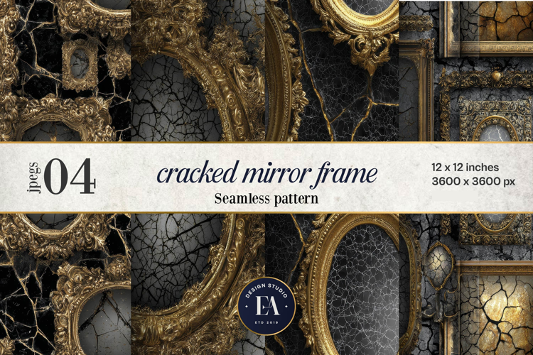 Cracked Mirror Frame Pattern | Black Gold Baroque is perfect for your creative and crafty projects. It can be used in Gift Wrapping, Promotional Items, Invitations, Wallpaper, Greeting Cards, Planners, Journals, Scrapbook, Notebook Covers, T-Shirts, Mugs, Tumbler, Puzzles, Crafting and much more,
