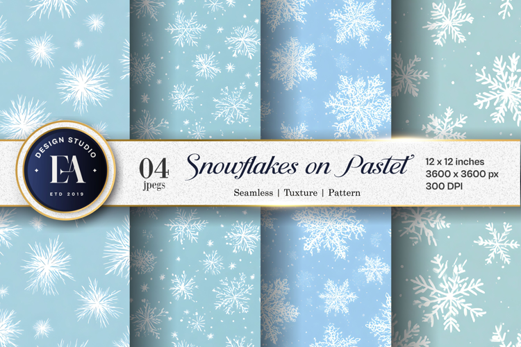 White Snowflakes on Pastel Background Seamless Digital Paper features delicate white snowflakes scattered across soft pastel tones, creating a cozy and dreamy winter aesthetic. Perfect for seasonal designs, holiday crafts, and gentle backgrounds.