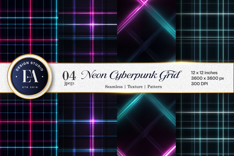 Neon Cyberpunk Grid Texture Glowing Lines Seamless Digital Paper featuring futuristic glowing lines, high-tech grid patterns, and a bold cyberpunk aesthetic. Perfect for sci-fi designs, gaming visuals, tech branding, and modern digital projects.