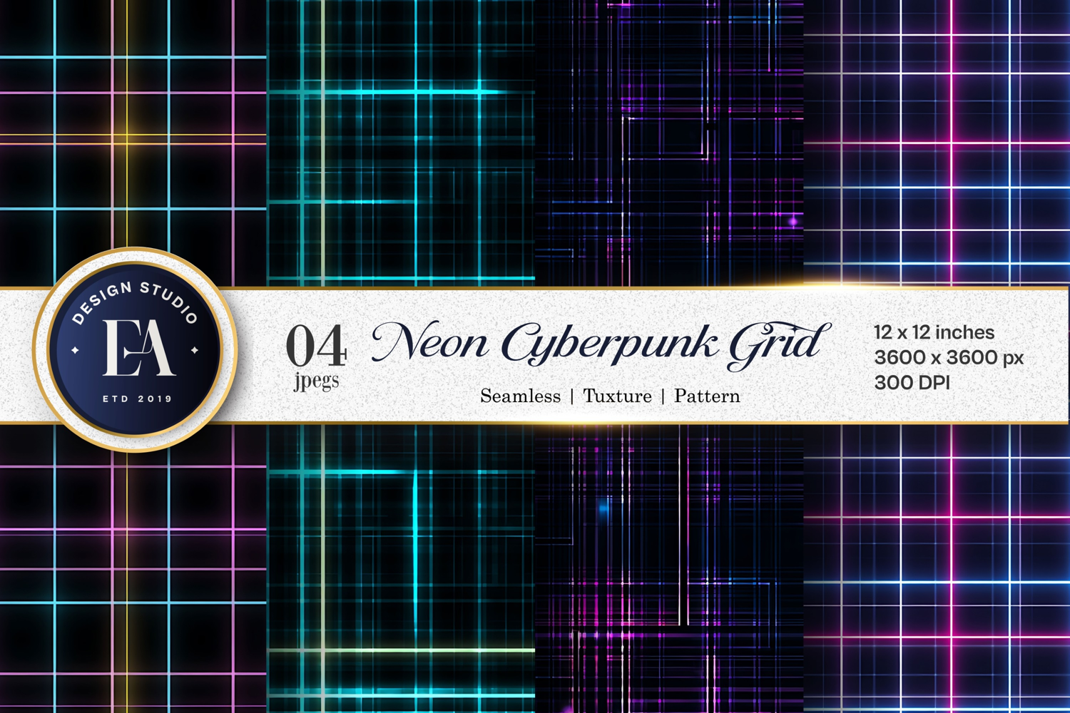 Neon Cyberpunk Grid Texture Glowing Lines Seamless Digital Paper featuring futuristic glowing lines, high-tech grid patterns, and a bold cyberpunk aesthetic. Perfect for sci-fi designs, gaming visuals, tech branding, and modern digital projects.