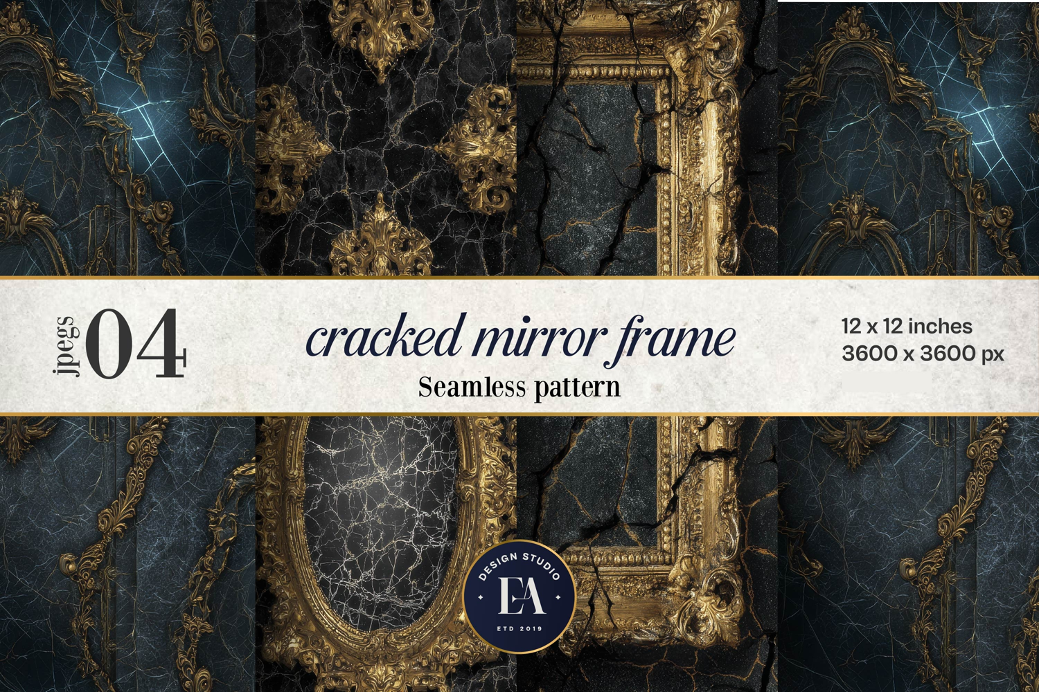 Cracked Mirror Frame Pattern | Black Gold Baroque is perfect for your creative and crafty projects. It can be used in Gift Wrapping, Promotional Items, Invitations, Wallpaper, Greeting Cards, Planners, Journals, Scrapbook, Notebook Covers, T-Shirts, Mugs, Tumbler, Puzzles, Crafting and much more,