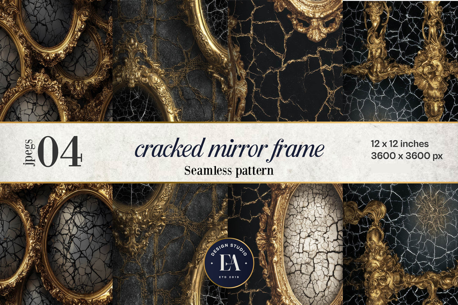 Cracked Mirror Frame Pattern | Black Gold Baroque is perfect for your creative and crafty projects. It can be used in Gift Wrapping, Promotional Items, Invitations, Wallpaper, Greeting Cards, Planners, Journals, Scrapbook, Notebook Covers, T-Shirts, Mugs, Tumbler, Puzzles, Crafting and much more,