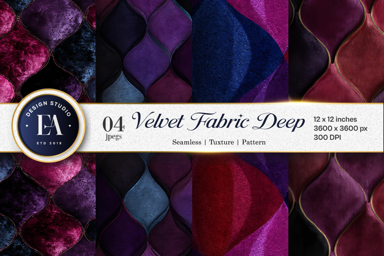 Velvet Fabric Texture Deep Jewel Tones Seamless Digital Paper featuring rich, luxurious fabric depth with elegant jewel-inspired colors. This seamless velvet texture adds a sophisticated and premium feel to creative projects, perfect for elegant and high-end designs.