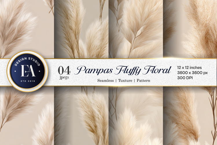 Pampas Grass Pattern Soft Beige Fluffy Floral Texture Seamless Digital Paper featuring airy pampas plumes, calming neutral tones, and a cozy boho aesthetic. Perfect for elegant, rustic, and minimalist creative projects.