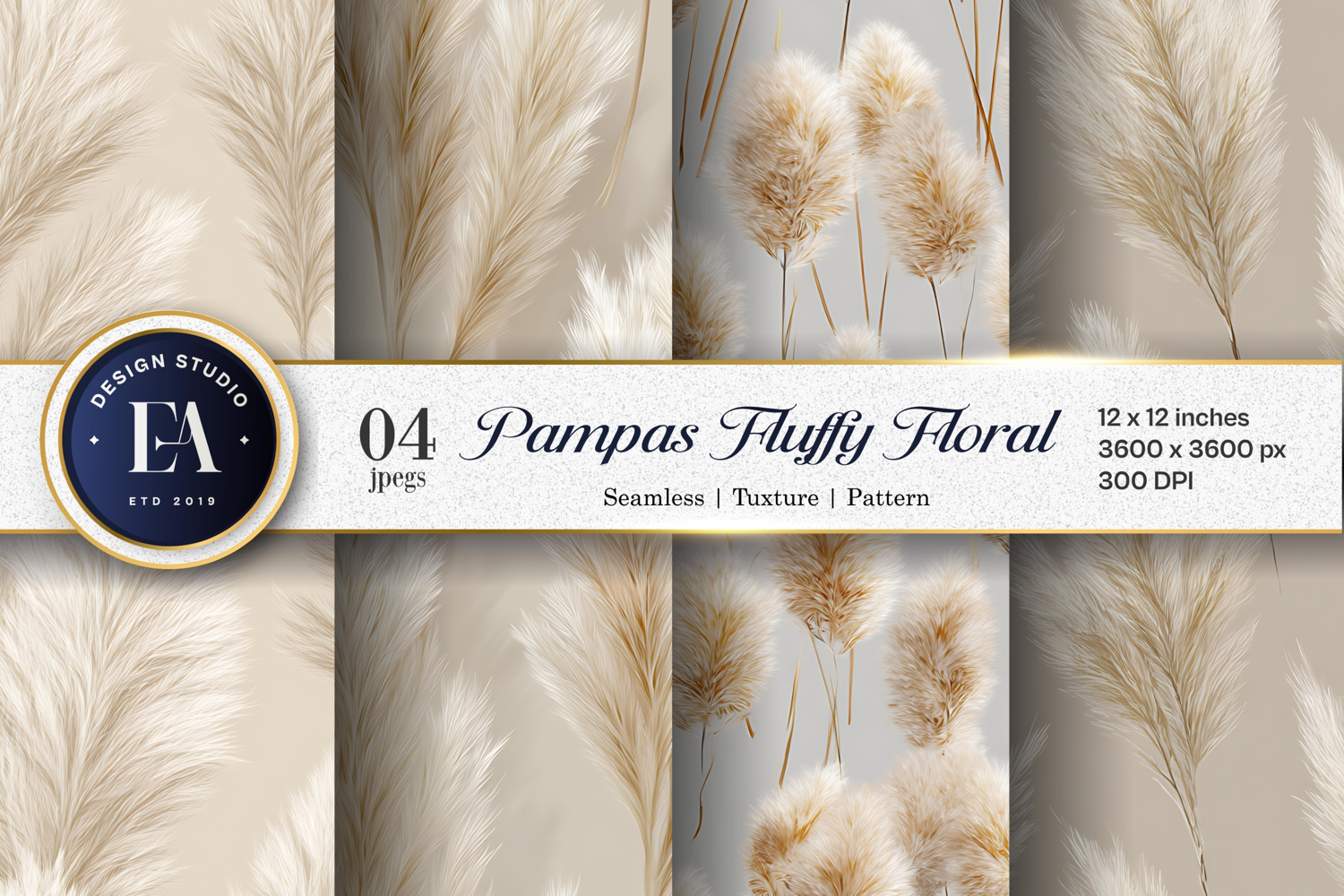 Pampas Grass Pattern Soft Beige Fluffy Floral Texture Seamless Digital Paper featuring airy pampas plumes, calming neutral tones, and a cozy boho aesthetic. Perfect for elegant, rustic, and minimalist creative projects.