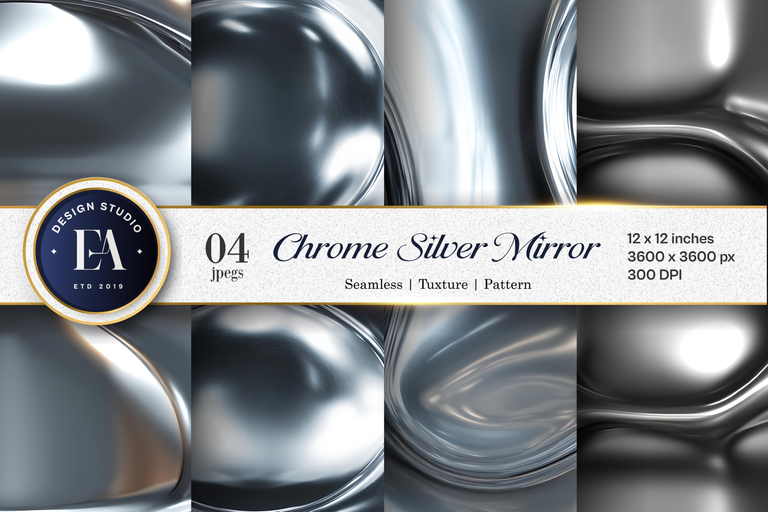 Polished chrome silver mirror digital paper featuring a sleek metallic shine with reflective brilliance. Perfect for modern, futuristic, luxury, industrial, and high-tech design projects that need a bold, sophisticated background with stunning metallic finish.