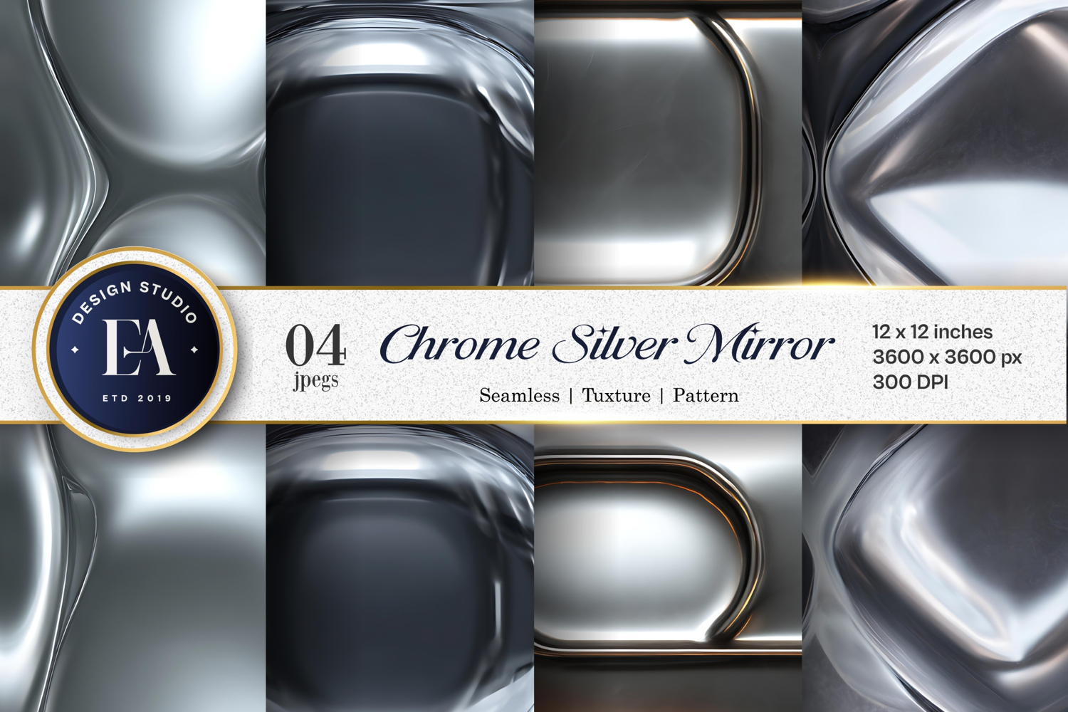 Polished chrome silver mirror digital paper featuring a sleek metallic shine with reflective brilliance. Perfect for modern, futuristic, luxury, industrial, and high-tech design projects that need a bold, sophisticated background with stunning metallic finish.