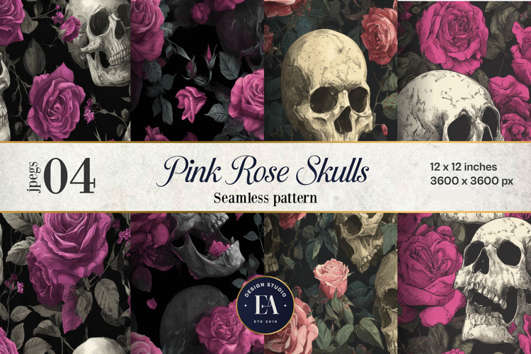 Pink Rose Skull Pattern, Gothic Floral Skull Digital Paper  is perfect for your creative and crafty projects. It can be used in Gift Wrapping, Promotional Items, Invitations, Wallpaper, Greeting Cards, Planners, Journals, Scrapbook, Notebook Covers, T-Shirts, Mugs, Tumbler, Puzzles, Crafting and much more,