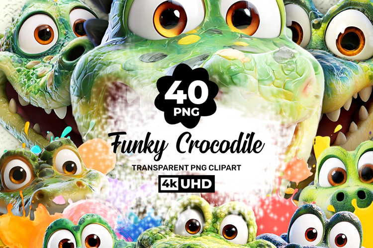 This collection includes 40 adorable crocodile characters featuring big eyes, playful expressions, and vibrant cartoon-style details. Perfect for kids designs, nursery themes, party decor, sublimation projects, and creative branding.