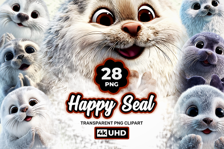 Happy Seal 28 PNG Watercolor Seal Clipart Transparent Background 4K UHD Digital Download