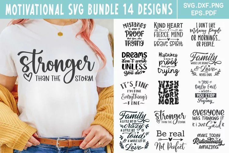 Similar Design Products to Motivational Svg Bundle, Png SVG Positive Quote, 14 designs