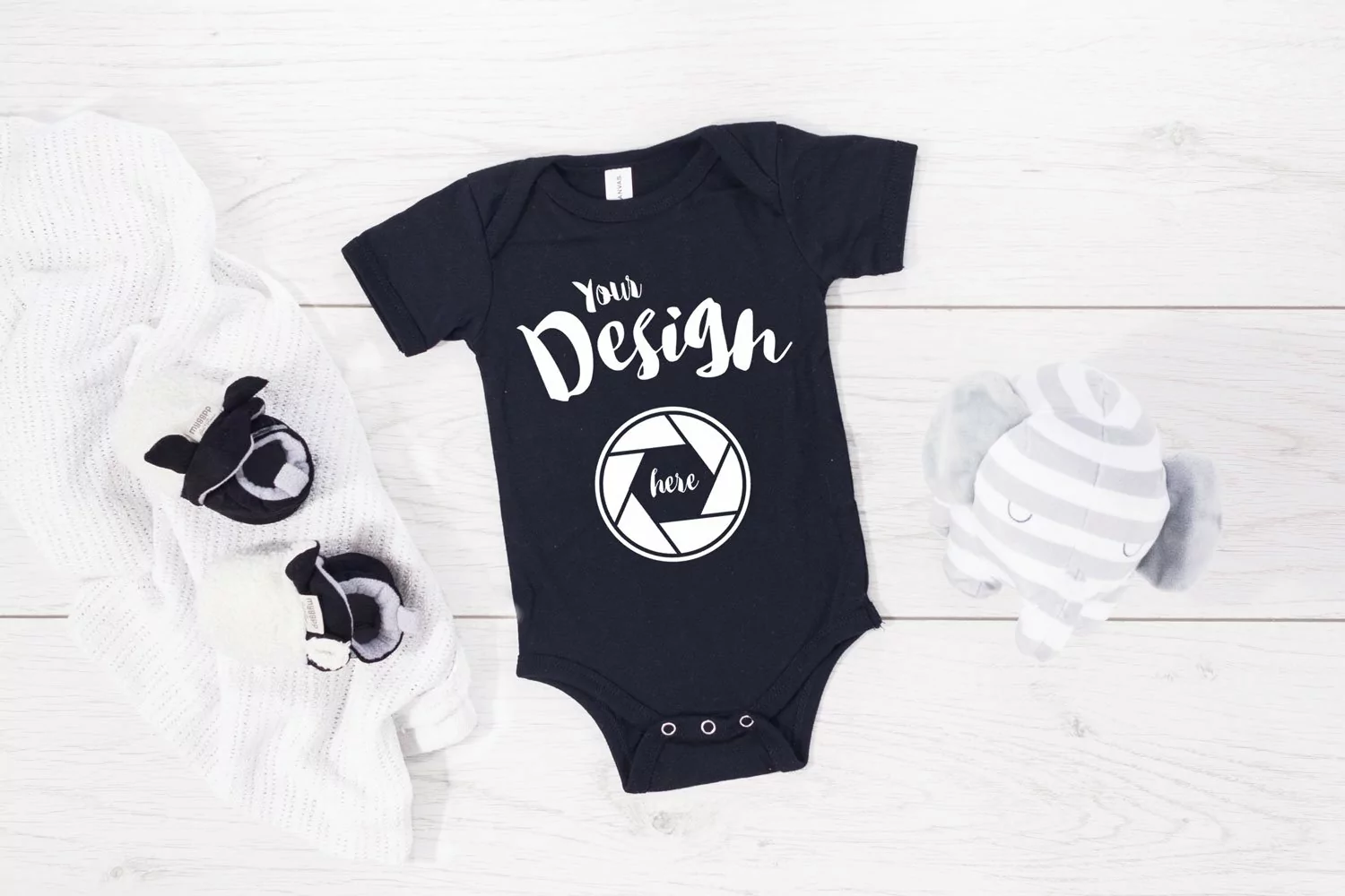 Similar Design Products to Black Bella Canvas 100B MockUp One Piece Flat Lay Bodysu