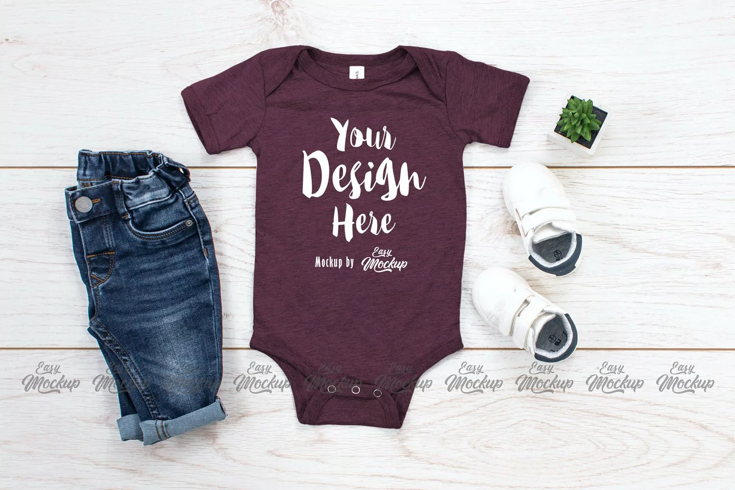 Similar Design Products to Maroon Heather Bella Canvas 100B MockUp One Piece Flat La