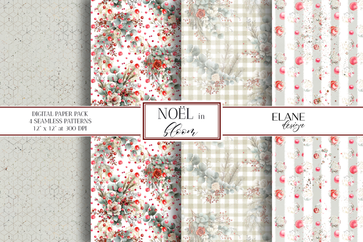 Christmas Digital Paper, Winter Floral Seamless Patterns