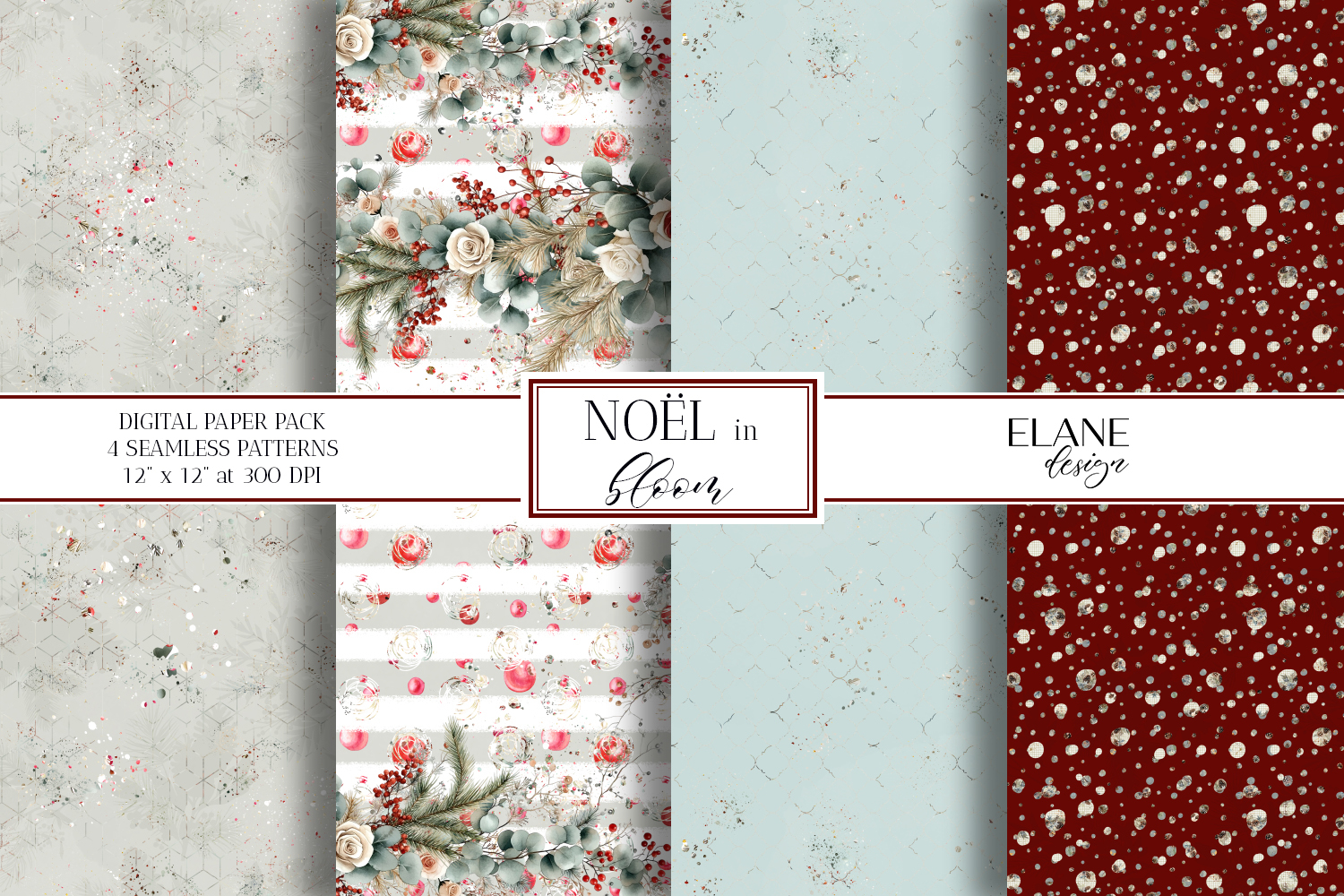 Christmas Digital Paper, Winter Floral Seamless Patterns example image 1