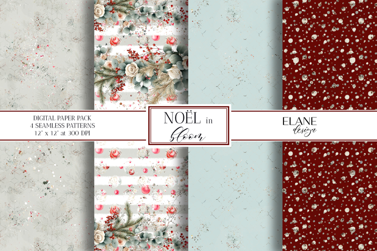 Christmas Digital Paper, Winter Floral Seamless Patterns