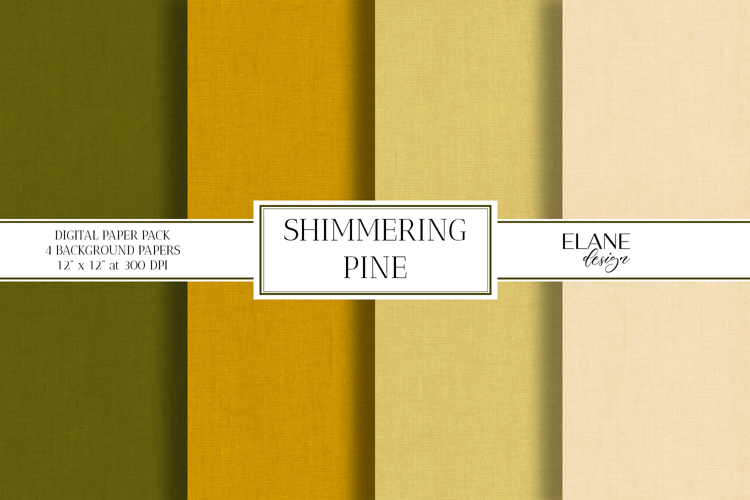 Pine Green and Gold Digital Paper, Fine Linen Textured Paper