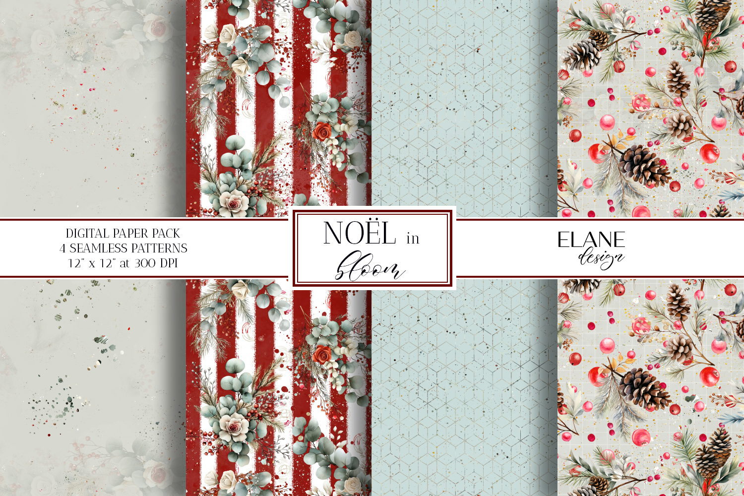 Christmas Digital Paper, Winter Floral Seamless Patterns example image 1