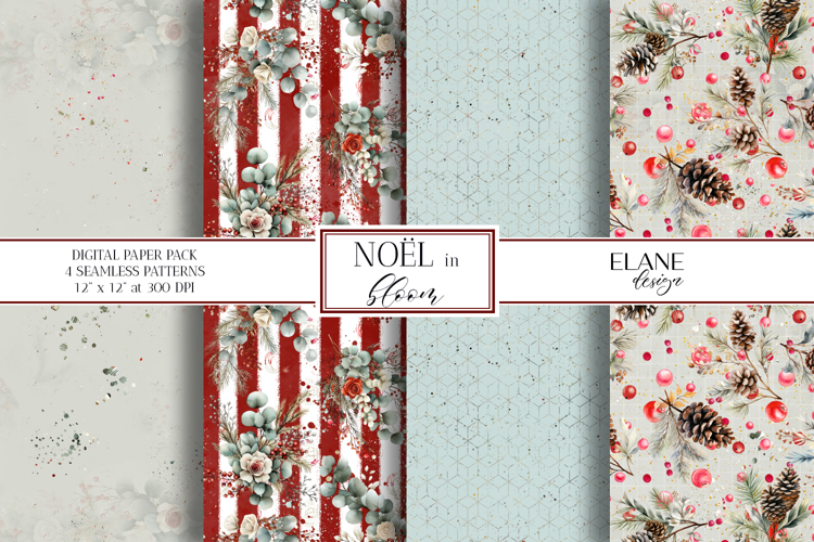 Christmas Digital Paper, Winter Floral Seamless Patterns