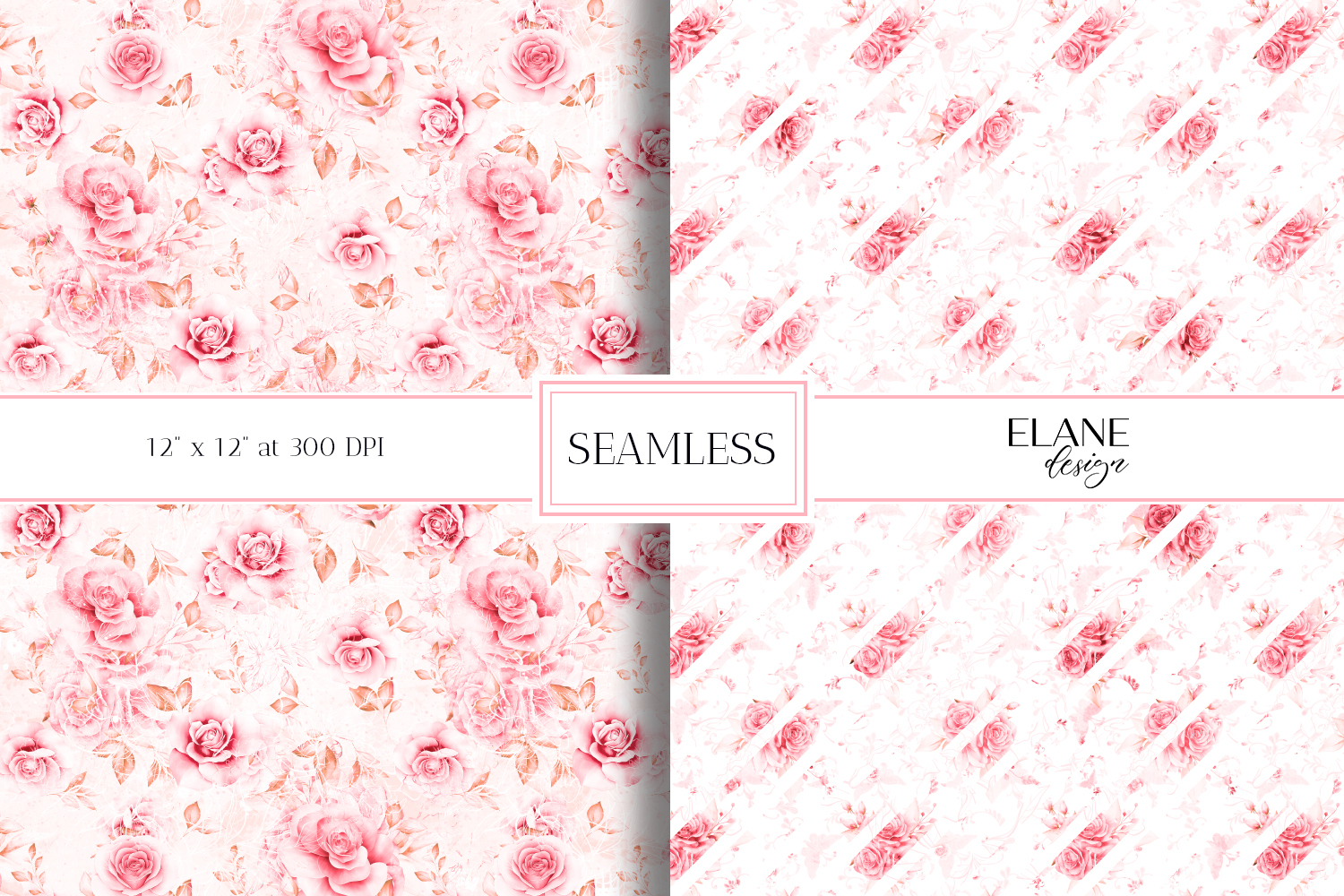 Similar Design Products to Pink Roses Digital Paper, Romantic Floral Seamless Patterns