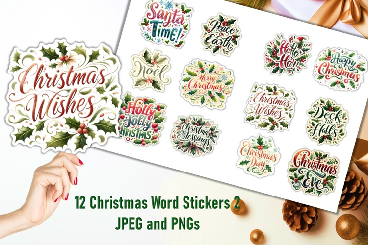 12 Christmas Words Stickers JPEG and PNGs example image 1