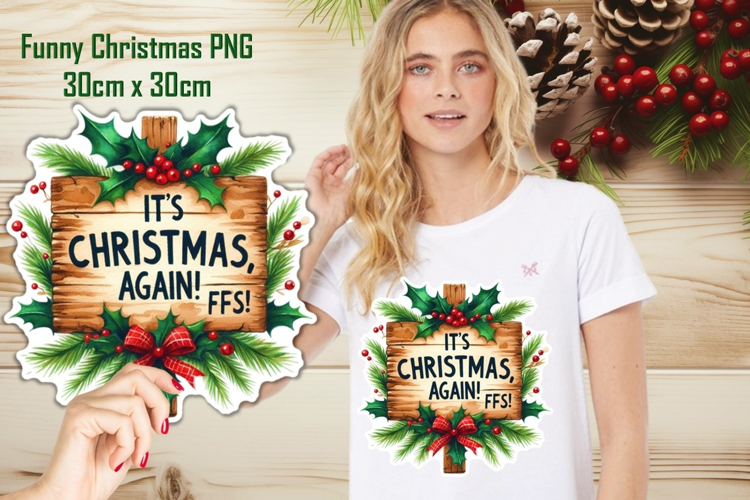 This large funny Christmas PNG says " It's Christmas! Again? FFS" The sublimation is in high resolution PNG format and measures approx 30cm x 30cm 912x12 inches). It can be resized to meet your needs