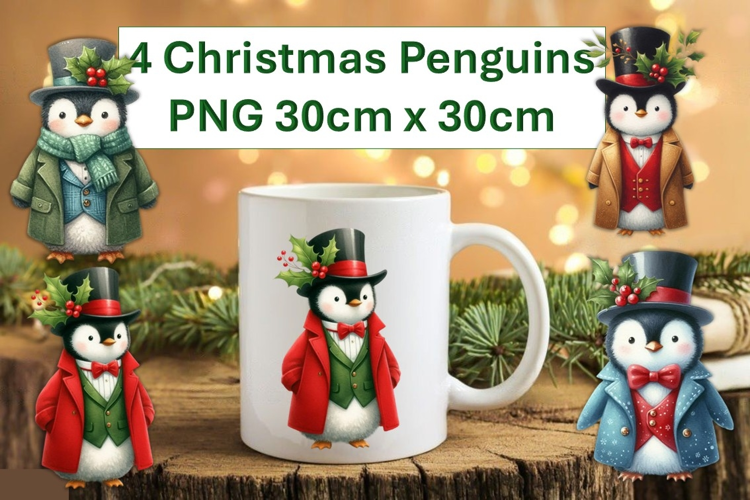 4 Cute Christmas Penguins Sublimations 30cm x 30cm PNG example image 1