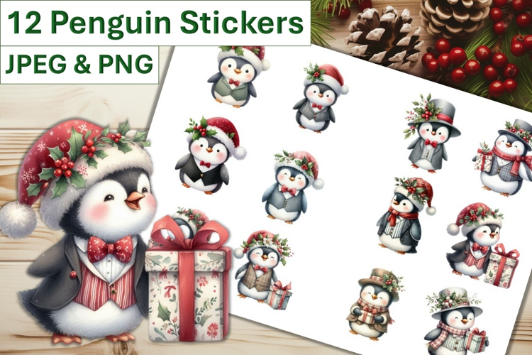 This set of 12 Christmas Shabby Chic Penguin stickers, come in individual PNGs and a JPEG sticker sheet for printing off. Great for Christmas Bikers