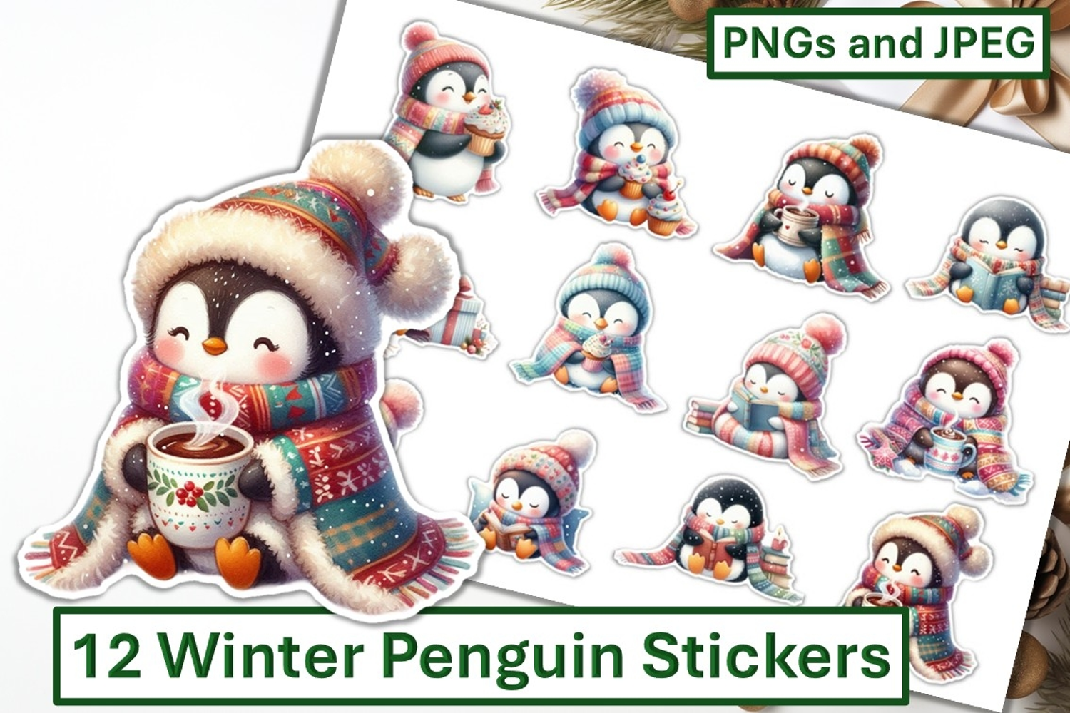 This set of 12 Winter Penguin Stickers stickers, come in individual PNGs and a JPEG sticker sheet for printing off. Great for Christmas